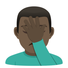 | Kodifikim | U+1F926 1F3FF 200D 2642 1F926 - 🤦 Fytyrë Me Pëllëmbë Në Ballë 1F3FF - 🏿 Nuancë Lëkure E Errët |